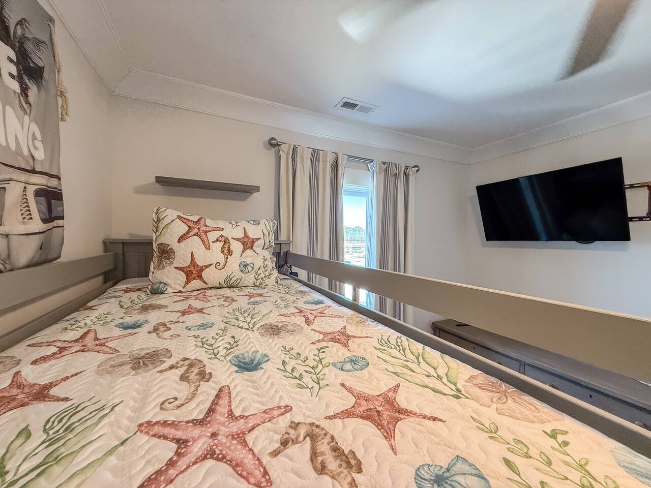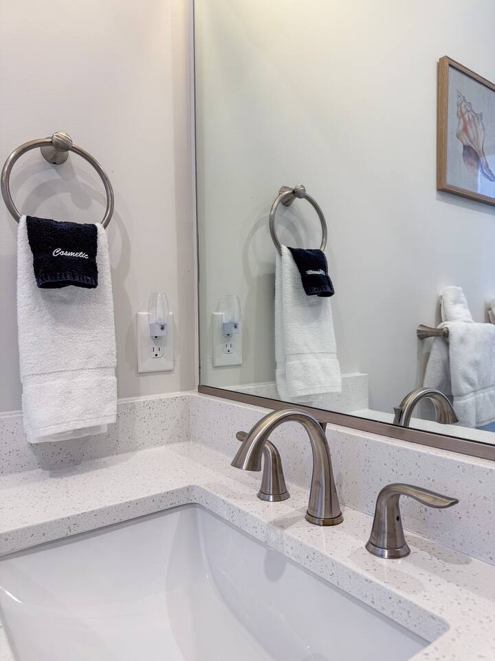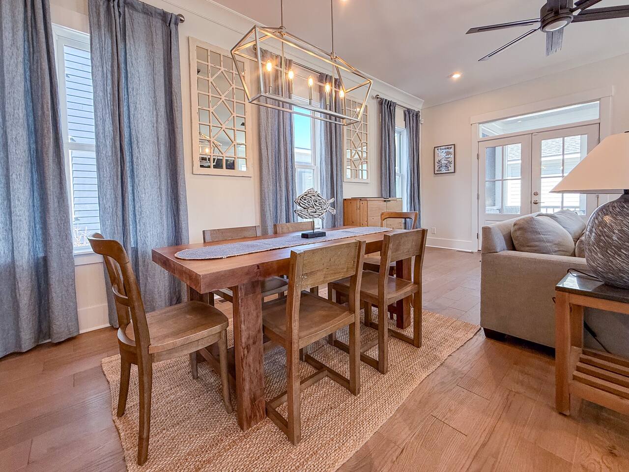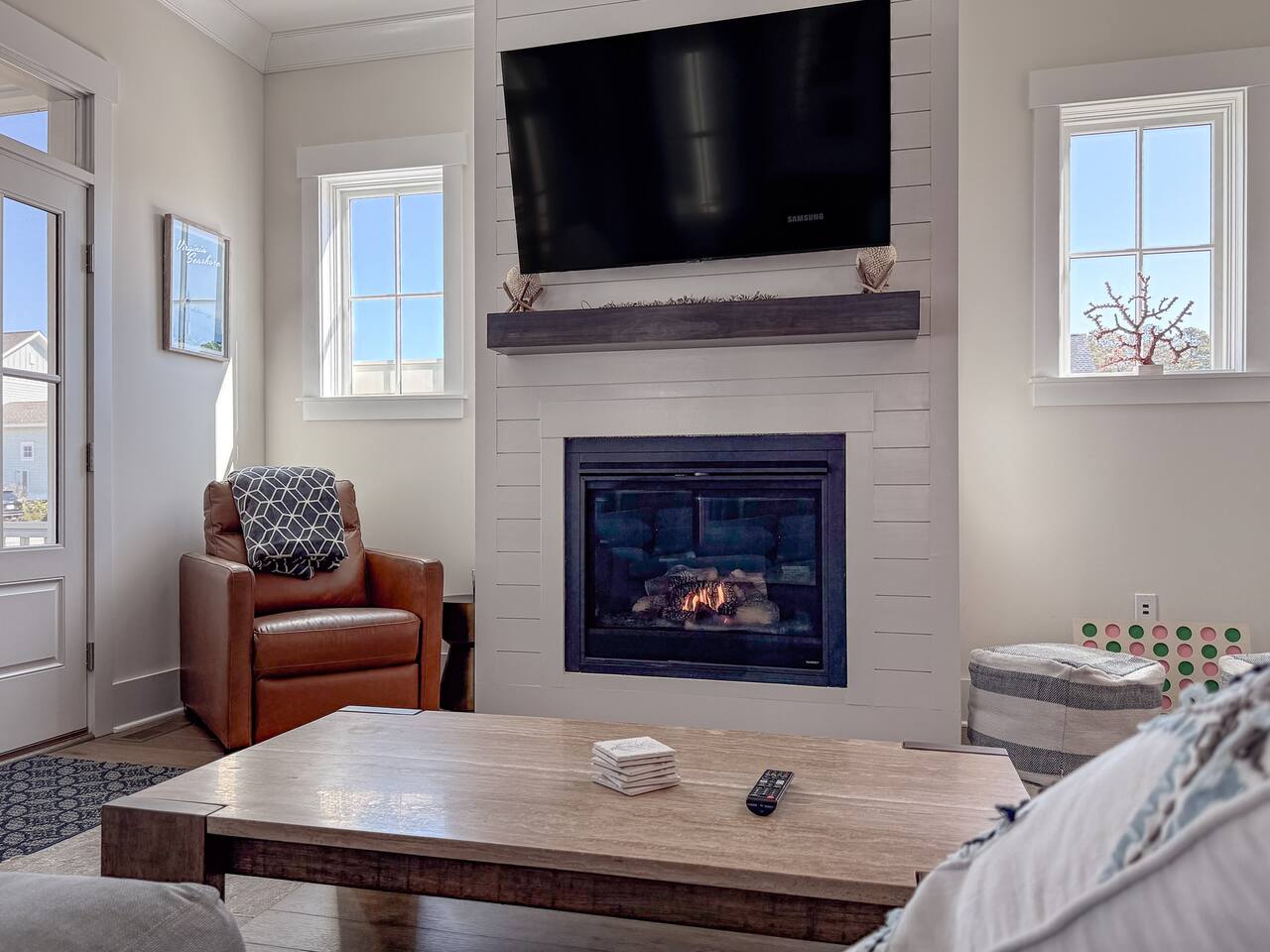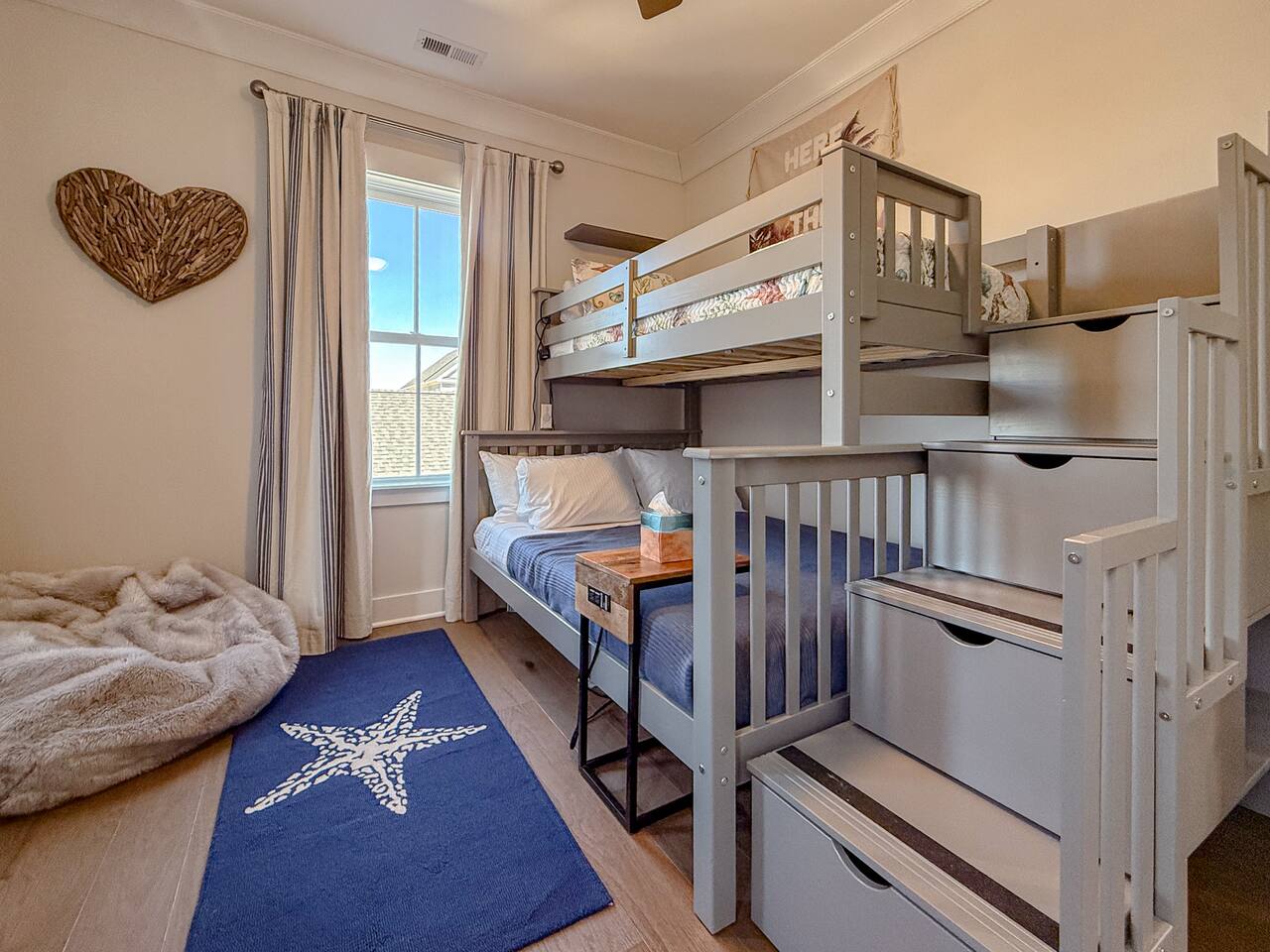 Wave Haven is a newly built single-family home that sleeps 10 guests and contains all hardwood floors. The main level contains a front room with a workstation and a comfortable pull-out (Queen) couch. The half bath can also serve guests staying on the main level. The living area has a breakfast nook that seats two, a dining table that seats six, and a counter that seats three. The living room contains a TV, gas fireplace, couch, swivel chair, and leather recliner, perfect for a nap or glass of wine. The area also contains a bar cart with wheels, which can double as a serving area. The kitchen serves as your home-away-from-home, with modern appliances and all of the amenities of your kitchen. The double-stack cabinets and pantry provide ample space for your food and beverages of choice! The upper level contains three bedrooms and two bathrooms. The master bedroom contains a king-size bed, a private bathroom, a workstation ideal for remote workers, a walk-in closet, a TV, and a reading nook. The two additional bedrooms each contain a TV and a bunk bed, which sleeps three—two twins and one full. The bunk beds also contain drawers in the stairs, so storage won’t be an issue. These two bedrooms share a full bathroom with a tub. The second level also contains a full Samsung front-load washer and dryer, an iron, and an ironing board. The property also has a screened porch and fan for outdoor eating and comfort. You can also slide into Adirondack chairs on the paver patio. You can enjoy a game of cornhole, outdoor checkers, and additional games. Wave Haven has a detached garage with two bays and two additional parking spots in front of the property. While the property doesn’t offer a golf cart (you can rent one in town), it has an outlet for charging. Additionally, Wave Haven has an outdoor shower to wash off from your amazing time at the beach. We offer a family-friendly environment, and we are mindful of those with allergies. As such, there is no smoking, and pets are not allowed. For those visiting with children, we provide a pack-and-play, Bumbo seater, high chair, corner protectors for the living room furniture, outlet protectors, and life vests. We provide family-friendly board games like Jenga and Monopoly. The property also has five smart TVs—so no fighting over what to watch! Finally, for remote workers, the house has two separate workstations and Ethernet connections for increased speed and reliability.
