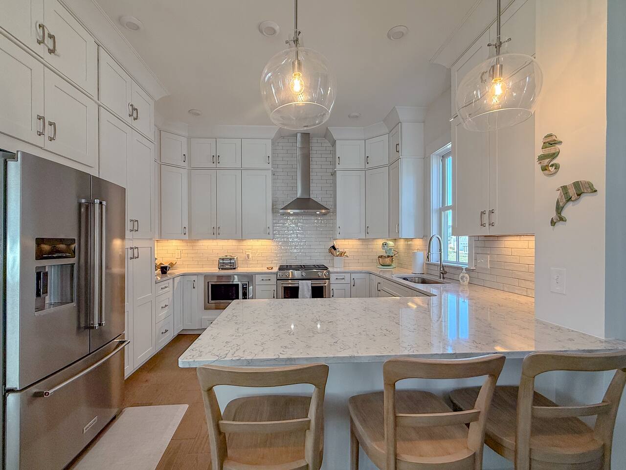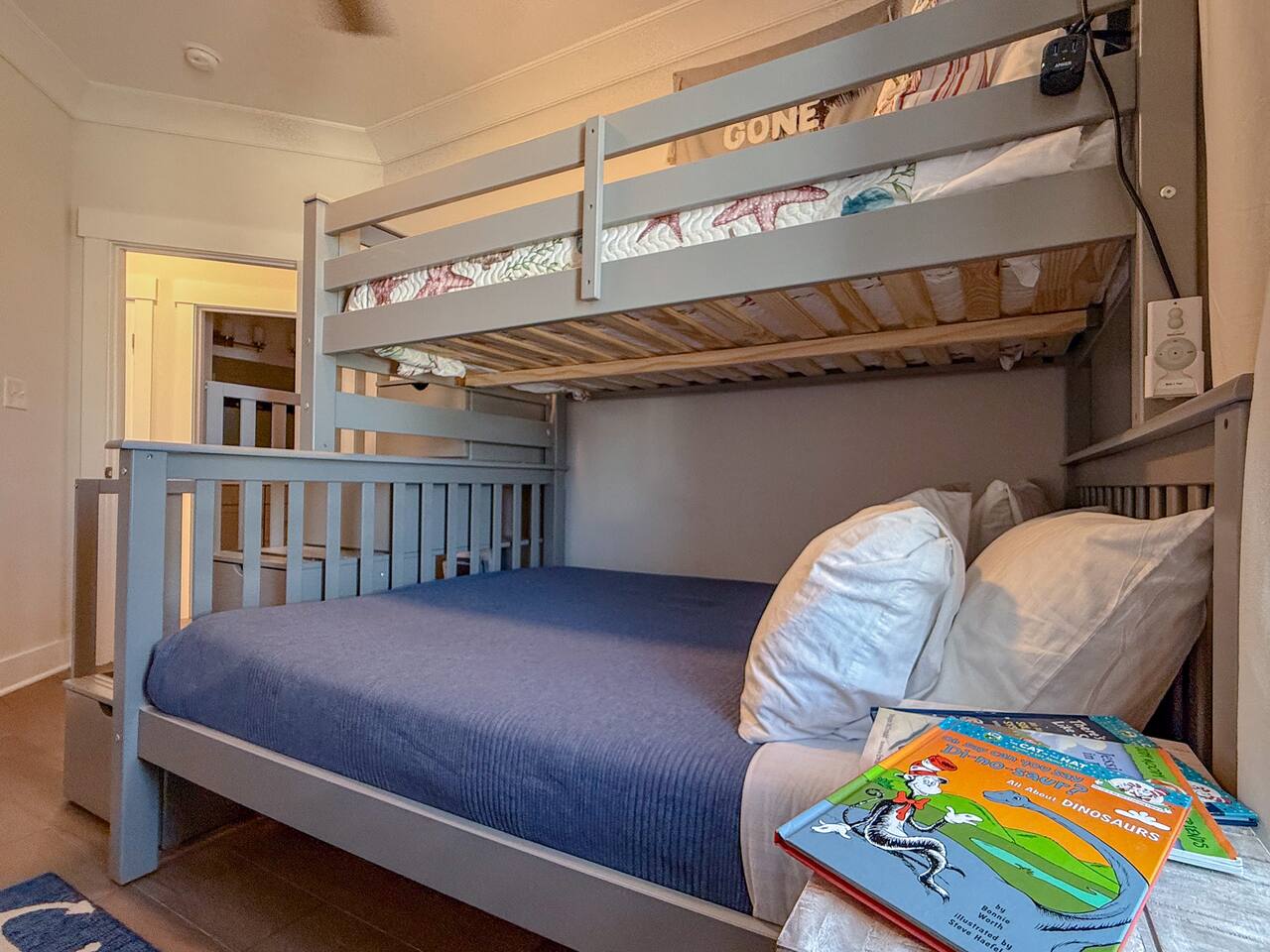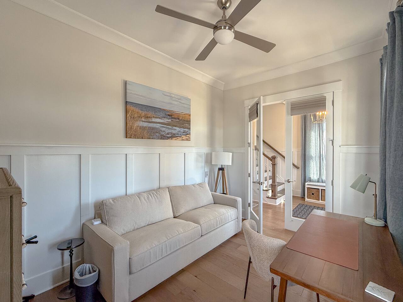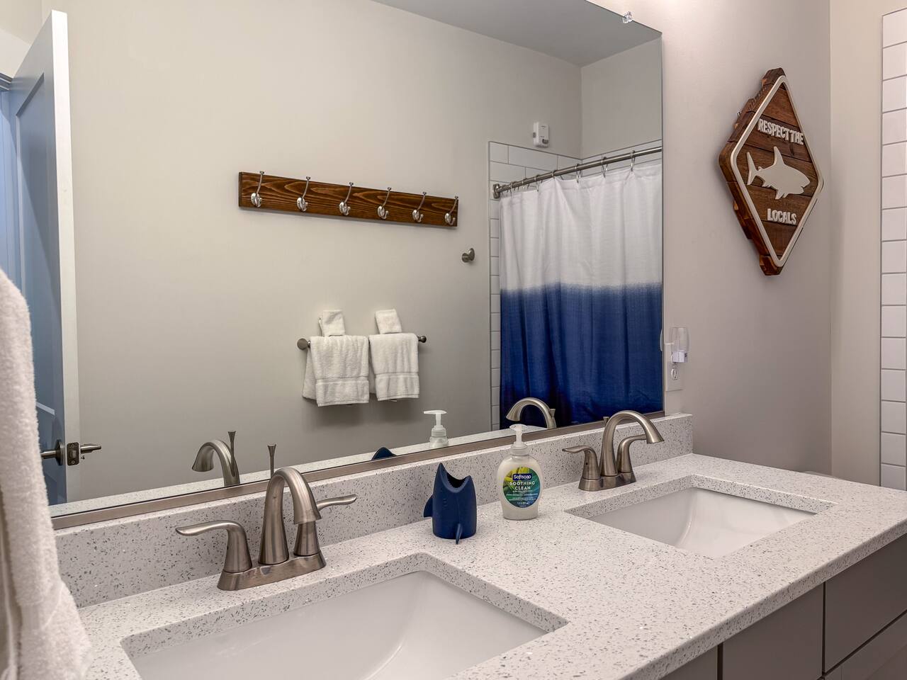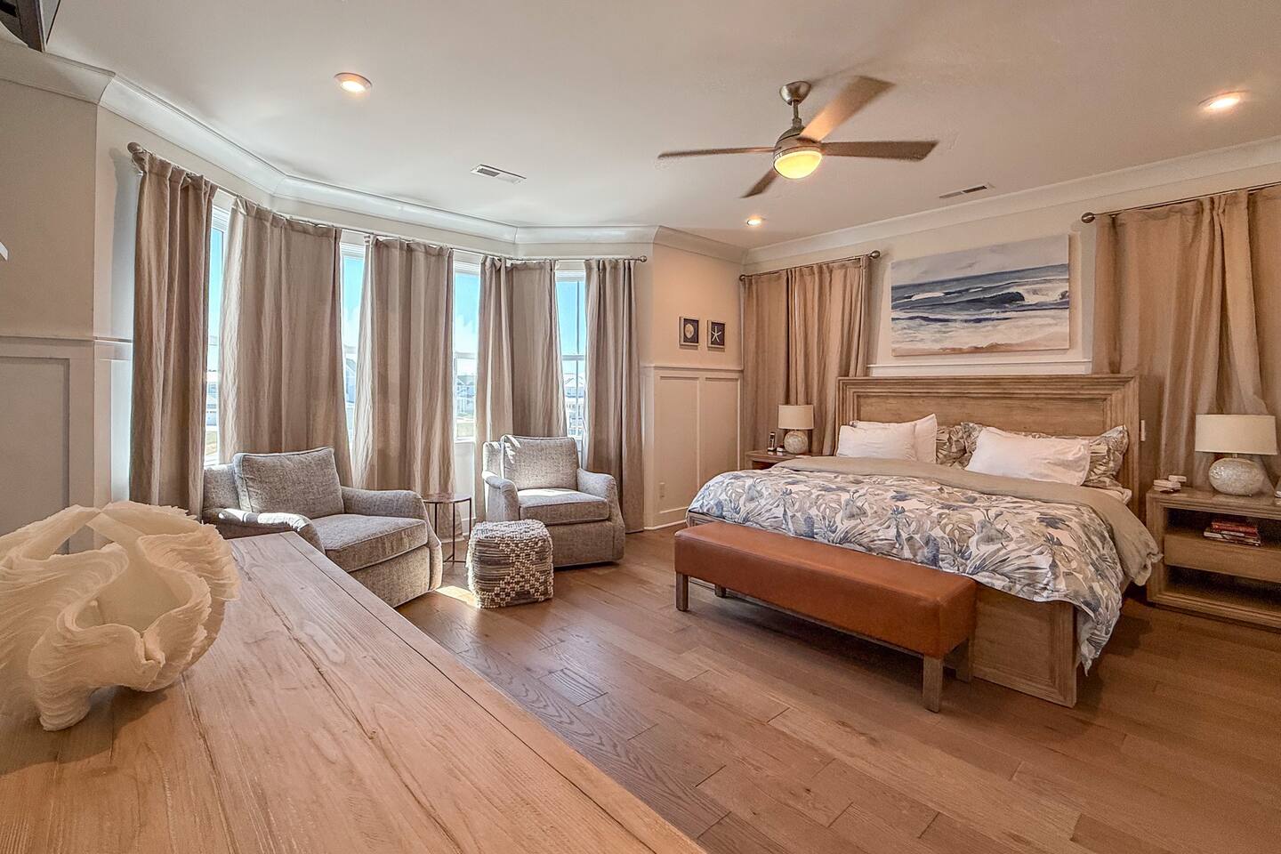 Wave Haven is a newly built single-family home that sleeps 10 guests and contains all hardwood floors. The main level contains a front room with a workstation and a comfortable pull-out (Queen) couch. The half bath can also serve guests staying on the main level. The living area has a breakfast nook that seats two, a dining table that seats six, and a counter that seats three. The living room contains a TV, gas fireplace, couch, swivel chair, and leather recliner, perfect for a nap or glass of wine. The area also contains a bar cart with wheels, which can double as a serving area. The kitchen serves as your home-away-from-home, with modern appliances and all of the amenities of your kitchen. The double-stack cabinets and pantry provide ample space for your food and beverages of choice! The upper level contains three bedrooms and two bathrooms. The master bedroom contains a king-size bed, a private bathroom, a workstation ideal for remote workers, a walk-in closet, a TV, and a reading nook. The two additional bedrooms each contain a TV and a bunk bed, which sleeps three—two twins and one full. The bunk beds also contain drawers in the stairs, so storage won’t be an issue. These two bedrooms share a full bathroom with a tub. The second level also contains a full Samsung front-load washer and dryer, an iron, and an ironing board. The property also has a screened porch and fan for outdoor eating and comfort. You can also slide into Adirondack chairs on the paver patio. You can enjoy a game of cornhole, outdoor checkers, and additional games. Wave Haven has a detached garage with two bays and two additional parking spots in front of the property. While the property doesn’t offer a golf cart (you can rent one in town), it has an outlet for charging. Additionally, Wave Haven has an outdoor shower to wash off from your amazing time at the beach. We offer a family-friendly environment, and we are mindful of those with allergies. As such, there is no smoking, and pets are not allowed. For those visiting with children, we provide a pack-and-play, Bumbo seater, high chair, corner protectors for the living room furniture, outlet protectors, and life vests. We provide family-friendly board games like Jenga and Monopoly. The property also has five smart TVs—so no fighting over what to watch! Finally, for remote workers, the house has two separate workstations and Ethernet connections for increased speed and reliability.