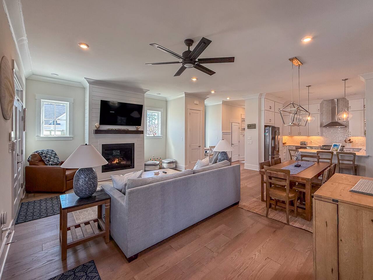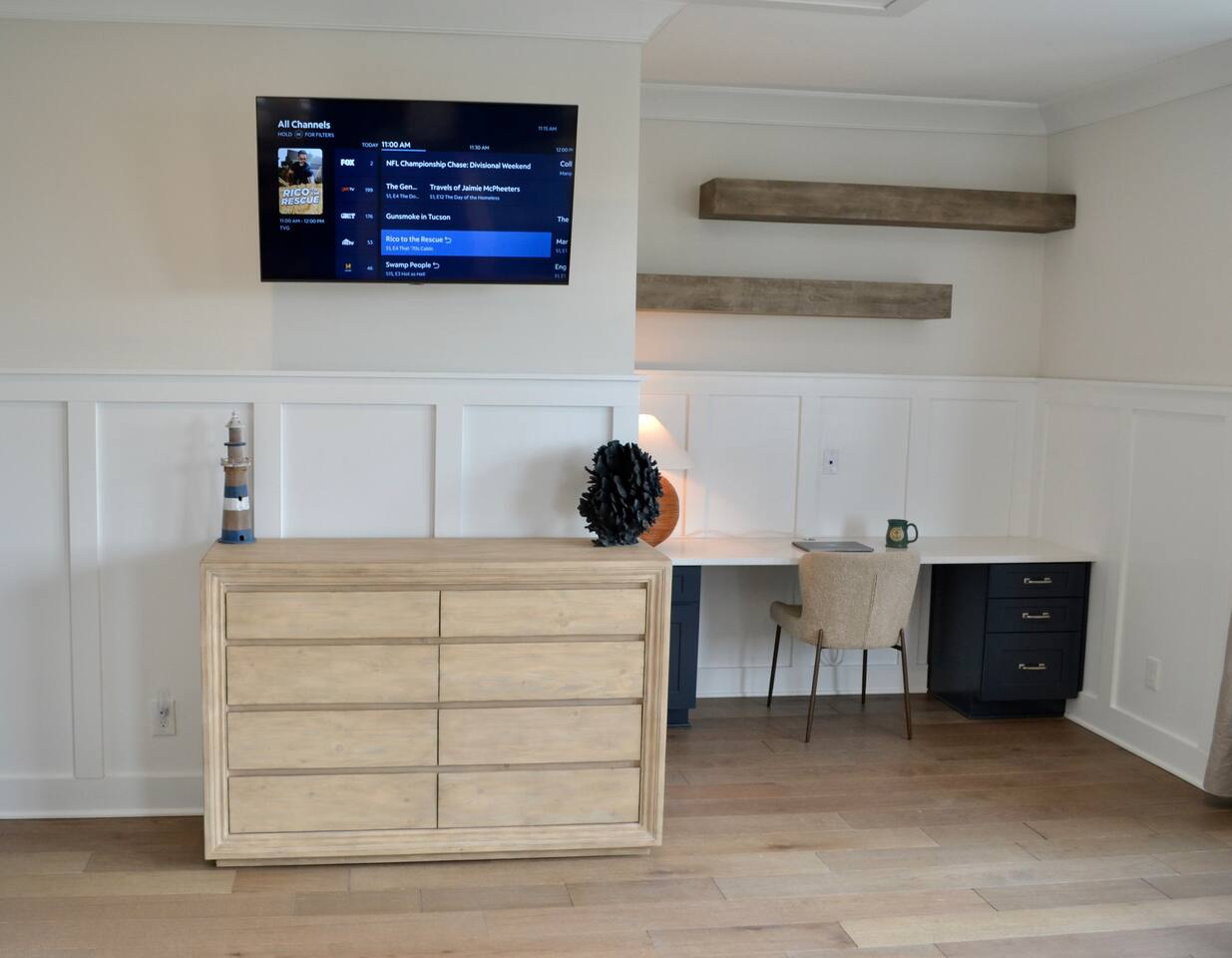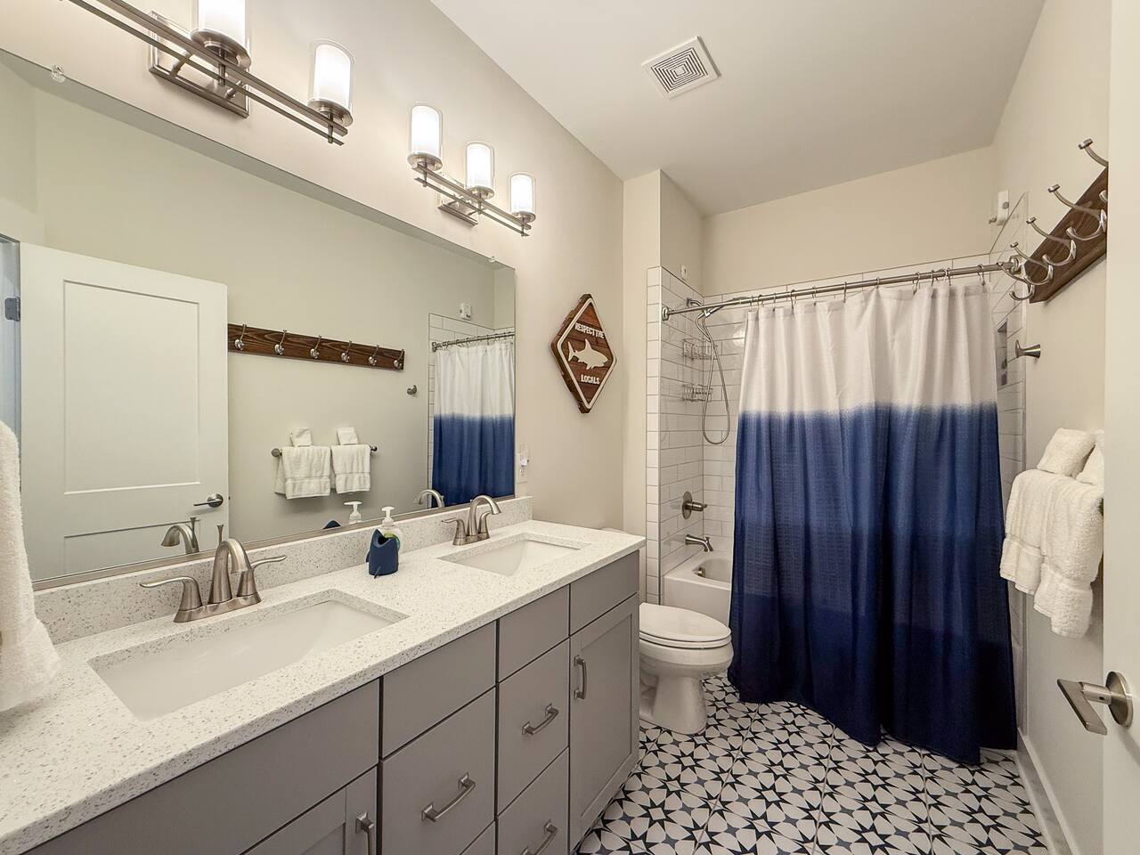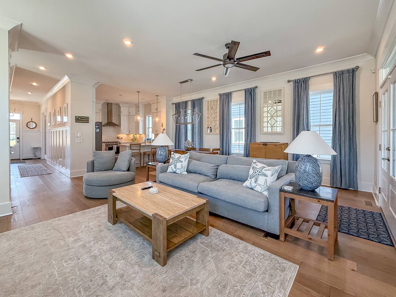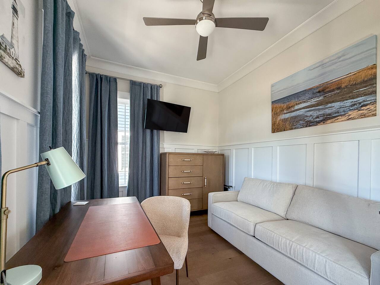 Wave Haven is a newly built single-family home that sleeps 10 guests and contains all hardwood floors. The main level contains a front room with a workstation and a comfortable pull-out (Queen) couch. The half bath can also serve guests staying on the main level. The living area has a breakfast nook that seats two, a dining table that seats six, and a counter that seats three. The living room contains a TV, gas fireplace, couch, swivel chair, and leather recliner, perfect for a nap or glass of wine. The area also contains a bar cart with wheels, which can double as a serving area. The kitchen serves as your home-away-from-home, with modern appliances and all of the amenities of your kitchen. The double-stack cabinets and pantry provide ample space for your food and beverages of choice! The upper level contains three bedrooms and two bathrooms. The master bedroom contains a king-size bed, a private bathroom, a workstation ideal for remote workers, a walk-in closet, a TV, and a reading nook. The two additional bedrooms each contain a TV and a bunk bed, which sleeps three—two twins and one full. The bunk beds also contain drawers in the stairs, so storage won’t be an issue. These two bedrooms share a full bathroom with a tub. The second level also contains a full Samsung front-load washer and dryer, an iron, and an ironing board. The property also has a screened porch and fan for outdoor eating and comfort. You can also slide into Adirondack chairs on the paver patio. You can enjoy a game of cornhole, outdoor checkers, and additional games. Wave Haven has a detached garage with two bays and two additional parking spots in front of the property. While the property doesn’t offer a golf cart (you can rent one in town), it has an outlet for charging. Additionally, Wave Haven has an outdoor shower to wash off from your amazing time at the beach. We offer a family-friendly environment, and we are mindful of those with allergies. As such, there is no smoking, and pets are not allowed. For those visiting with children, we provide a pack-and-play, Bumbo seater, high chair, corner protectors for the living room furniture, outlet protectors, and life vests. We provide family-friendly board games like Jenga and Monopoly. The property also has five smart TVs—so no fighting over what to watch! Finally, for remote workers, the house has two separate workstations and Ethernet connections for increased speed and reliability.